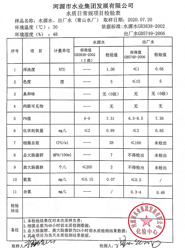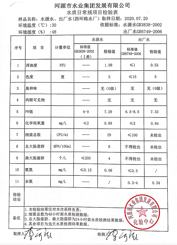 2020年7月20日水質(zhì)檢驗(yàn)報(bào)告