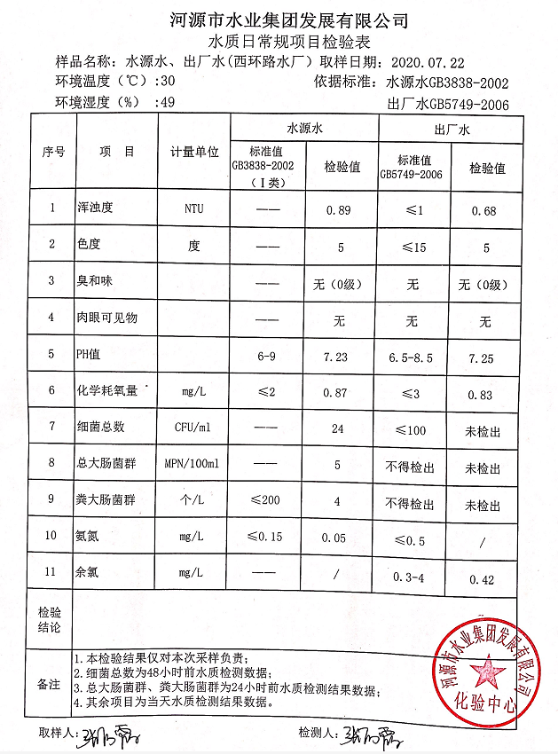 2020年7月22日水質(zhì)檢驗(yàn)報(bào)告