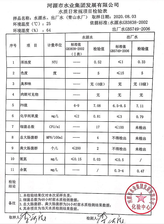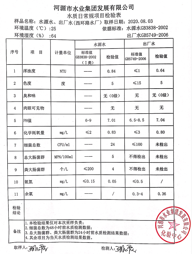 2020年8月3日水質(zhì)檢驗(yàn)報(bào)告