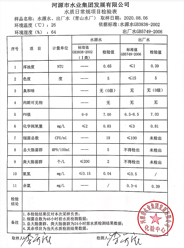 2020年8月6日水質(zhì)檢驗報告