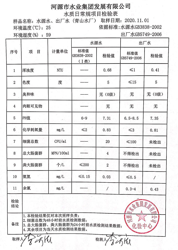 2020年11月1日水質(zhì)檢驗(yàn)報(bào)告