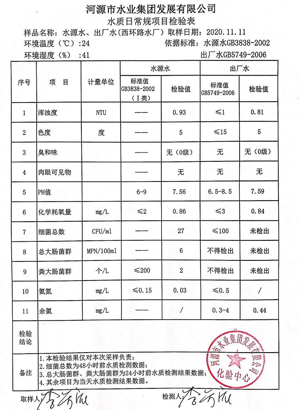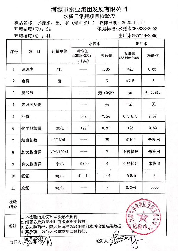 2020年11月11日水質(zhì)檢驗(yàn)報(bào)告