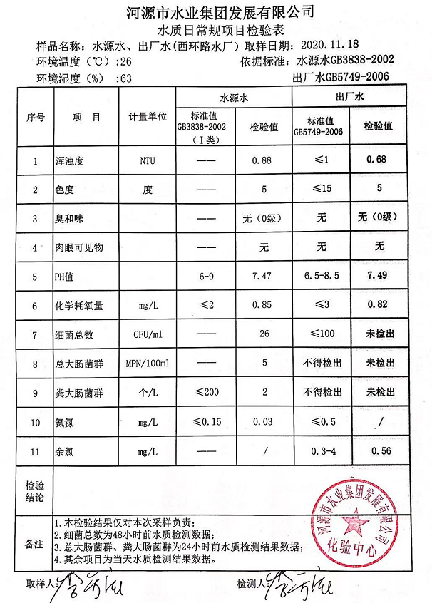 2020年11月18日水質(zhì)檢驗(yàn)報告