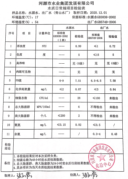 2020年12月1日水質(zhì)檢驗(yàn)報(bào)告