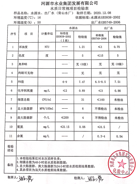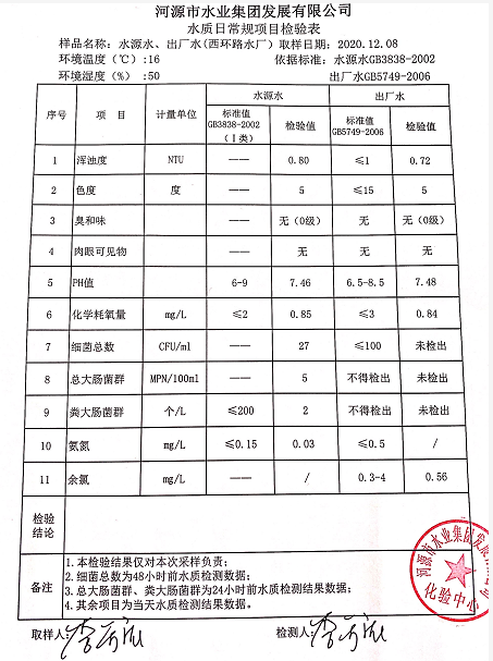 2020年12月8日水質(zhì)檢驗(yàn)報(bào)告