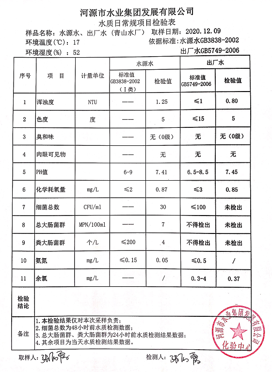 2020年12月9日水質(zhì)檢驗(yàn)報(bào)告