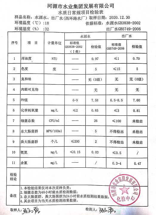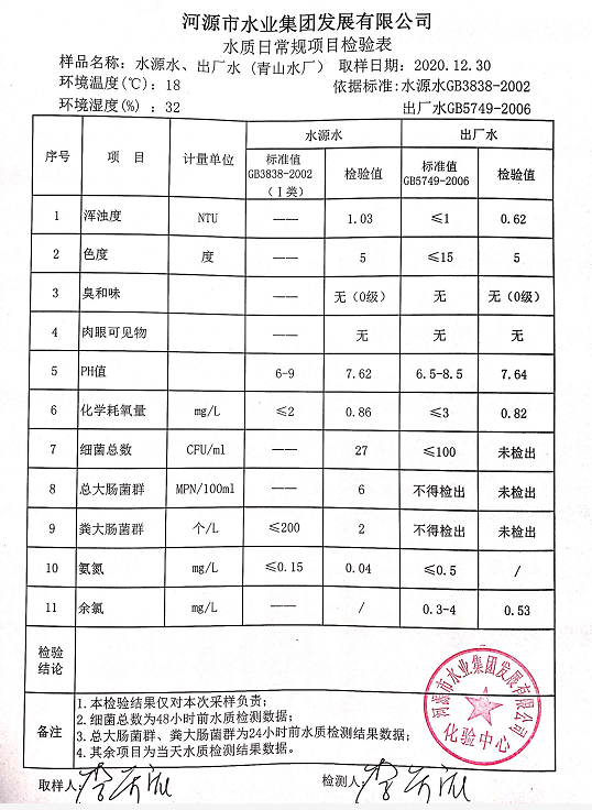 2020年12月30日水質(zhì)檢驗(yàn)報(bào)告