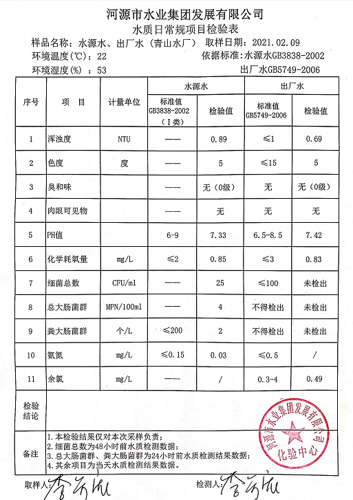 2021年2月9日水質(zhì)檢驗報告
