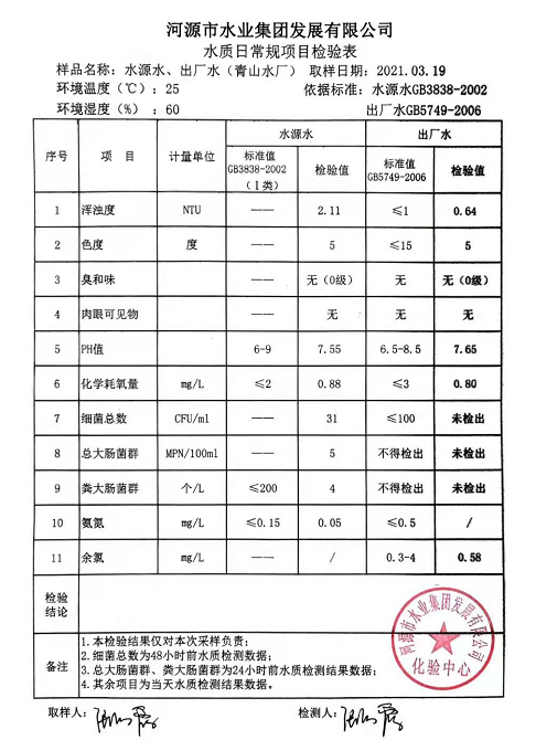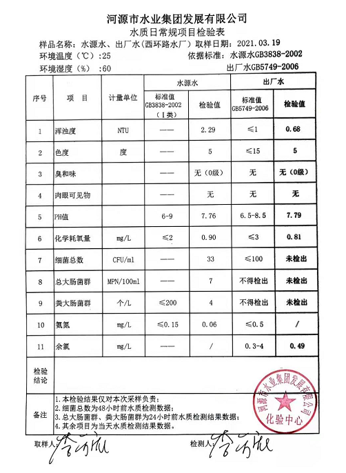 2021年3月19日水質檢驗報告