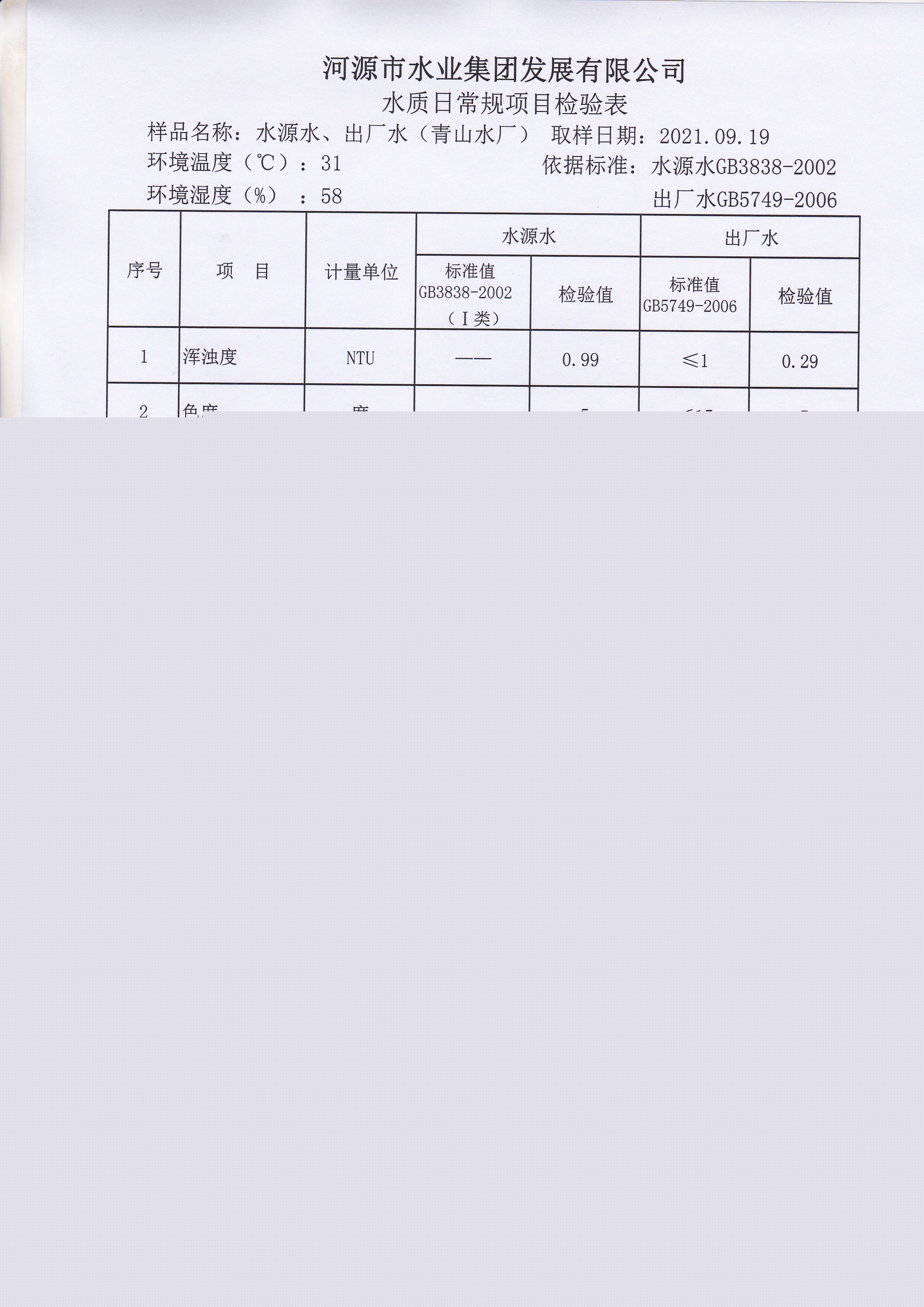 2021年9月19日水質(zhì)檢驗(yàn)報(bào)告 ?