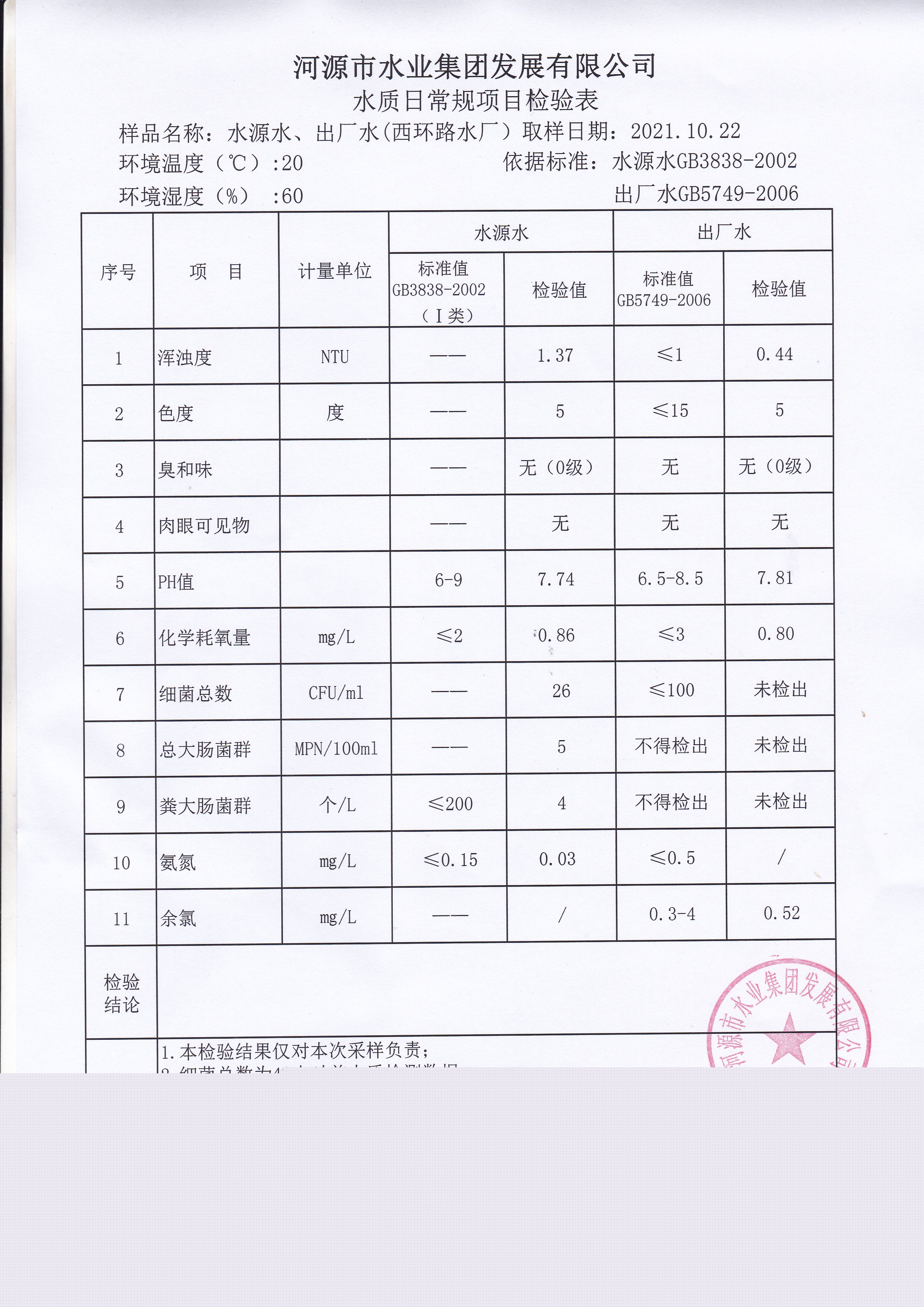2021年10月22日水質(zhì)檢驗(yàn)報(bào)告