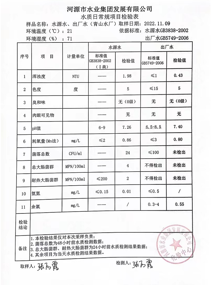 2022年11月9日水質(zhì)檢驗(yàn)報(bào)告
