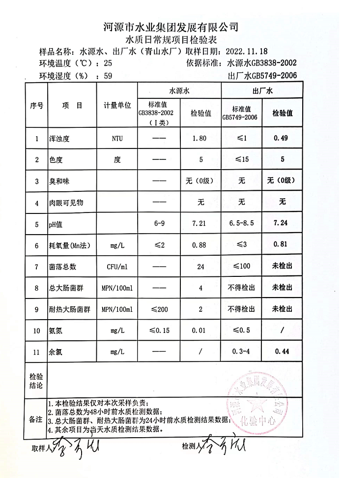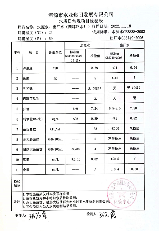 2022年11月18日水質檢驗報告