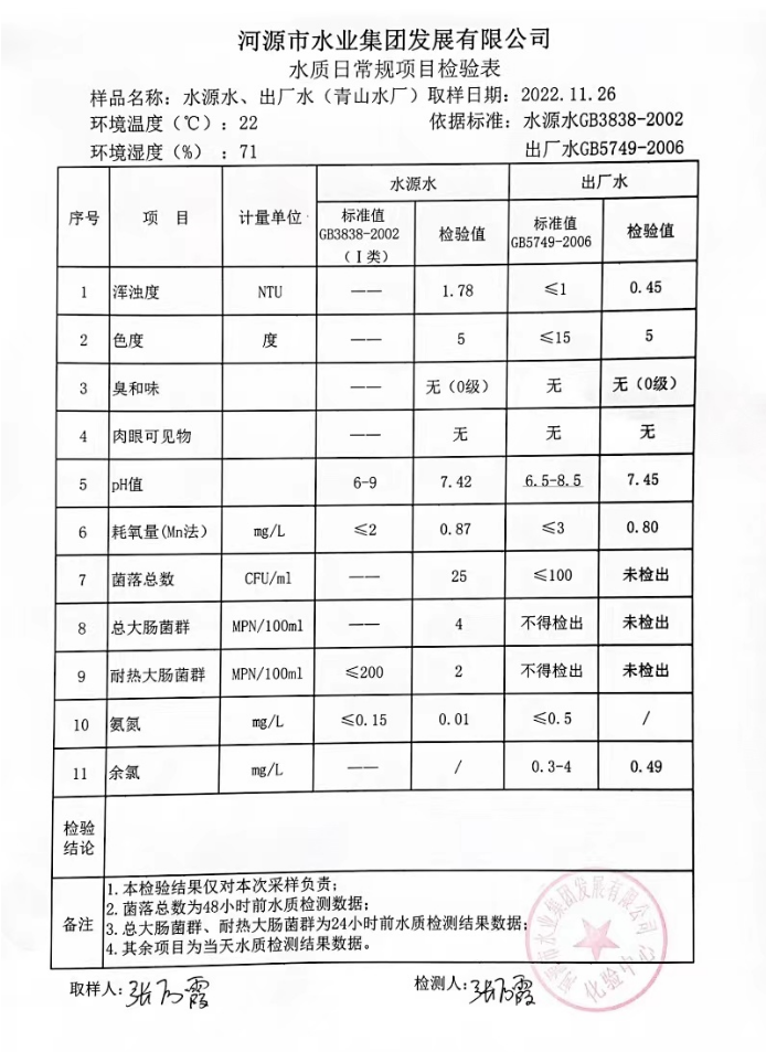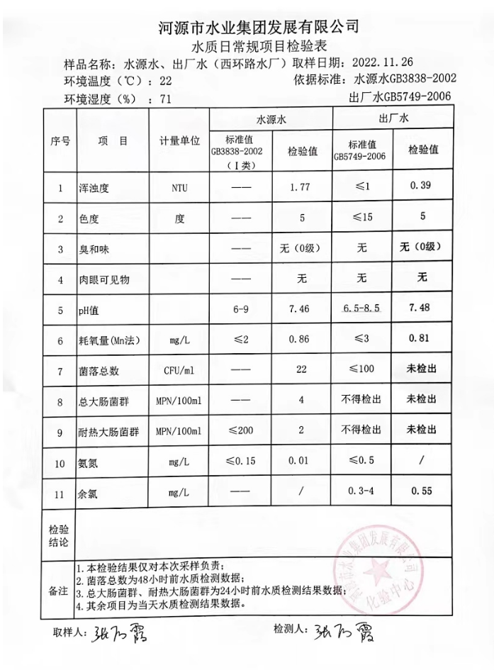 2022年11月26日水質(zhì)檢驗(yàn)報(bào)告
