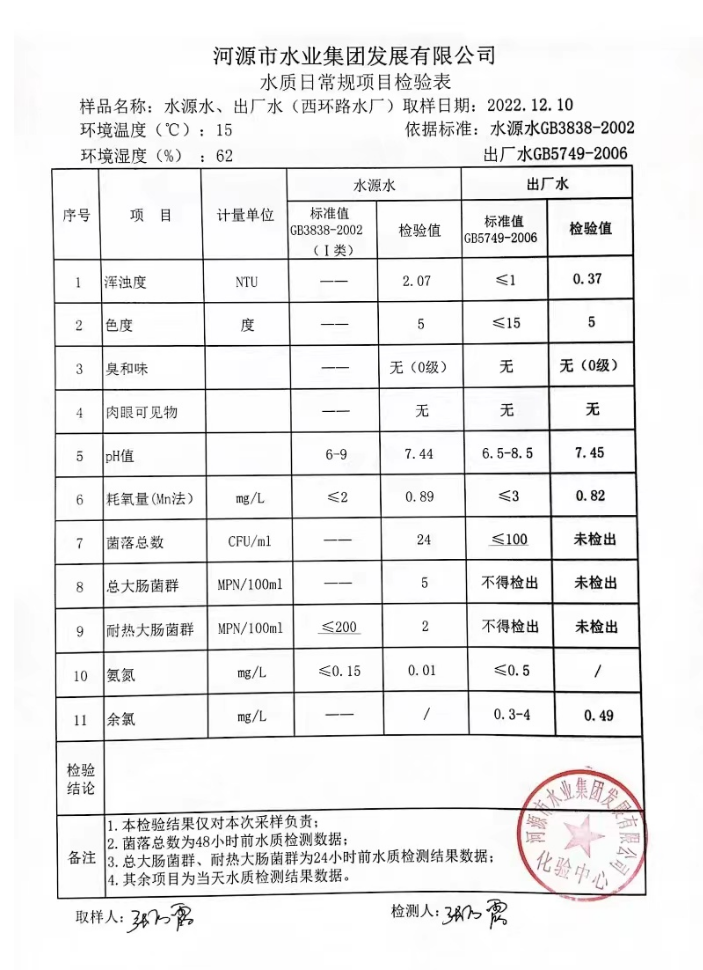 2022年12月10日水質(zhì)檢驗(yàn)報(bào)告