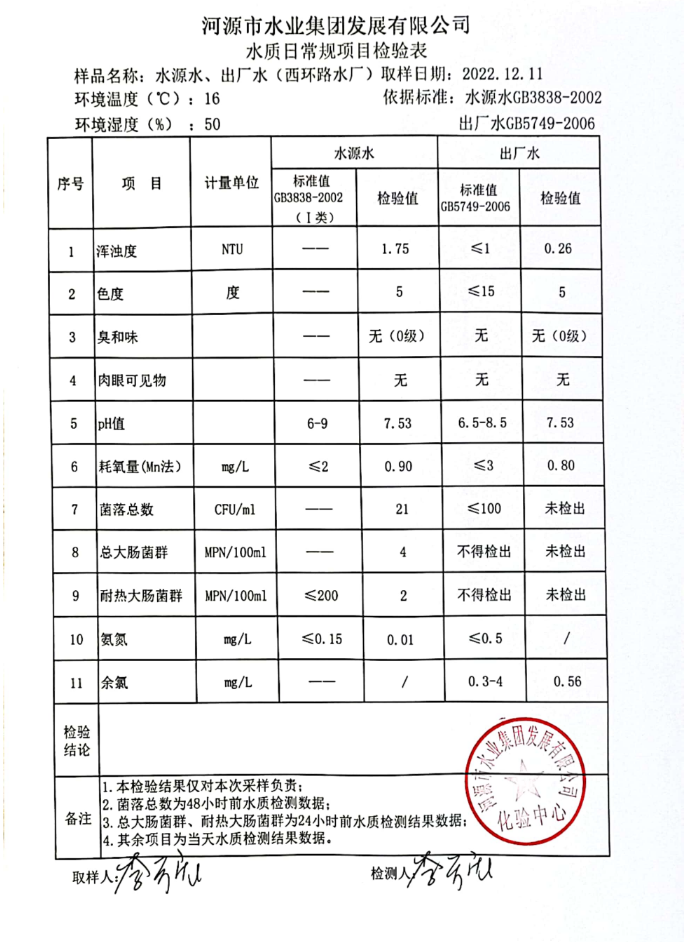 2022年12月11日水質(zhì)檢驗(yàn)報(bào)告