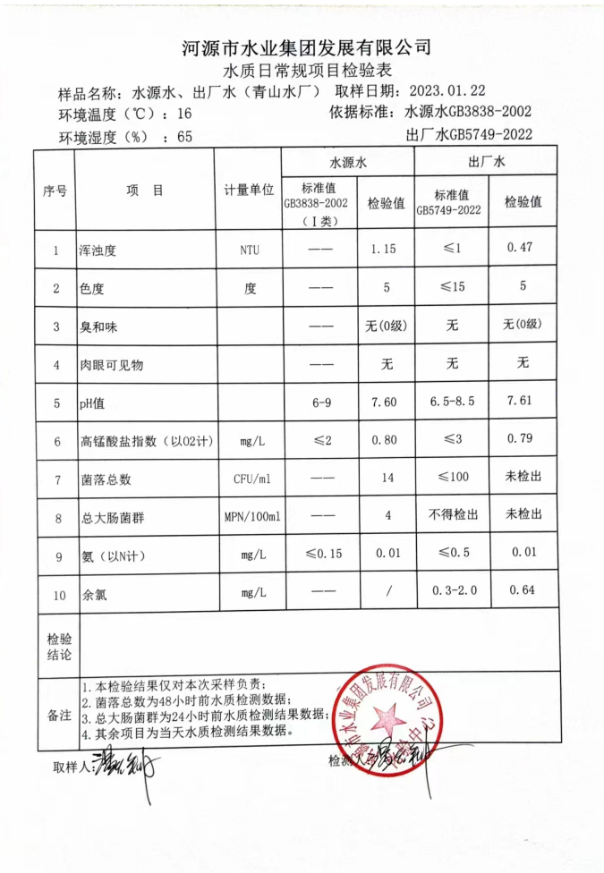 2023年1月22日水質(zhì)檢驗(yàn)報(bào)告