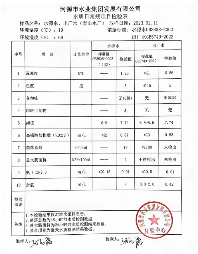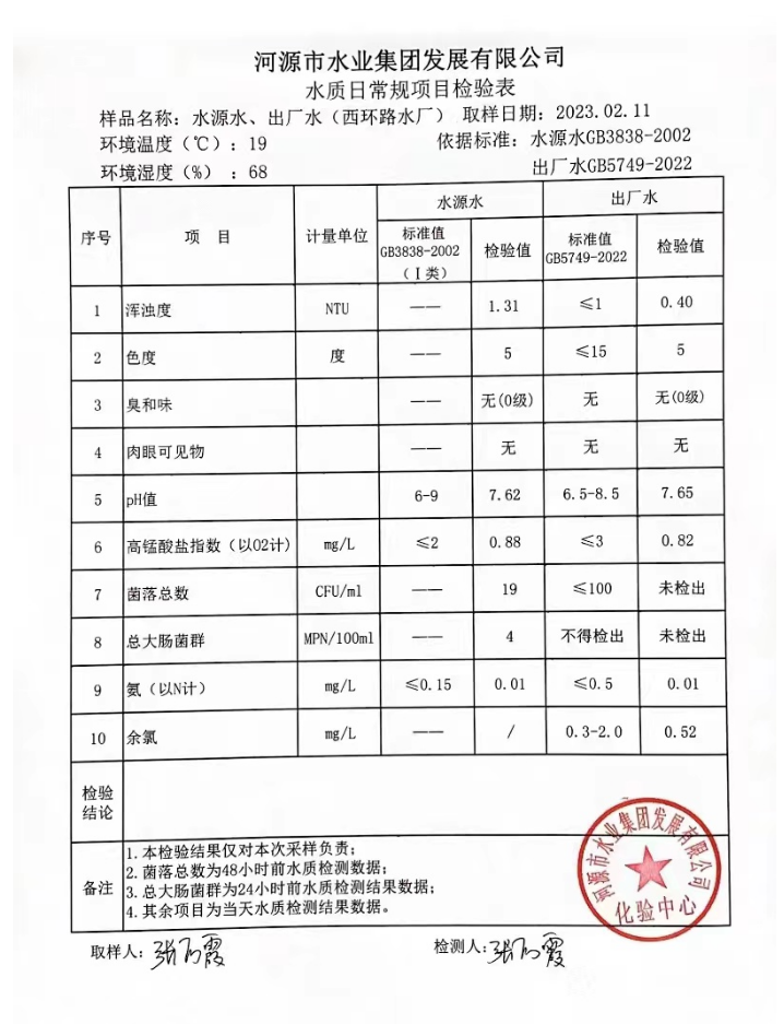 2023年2月11日水質(zhì)檢驗(yàn)報(bào)告