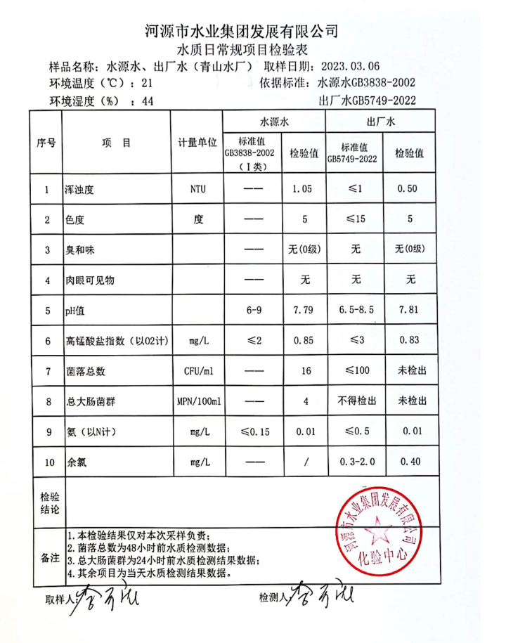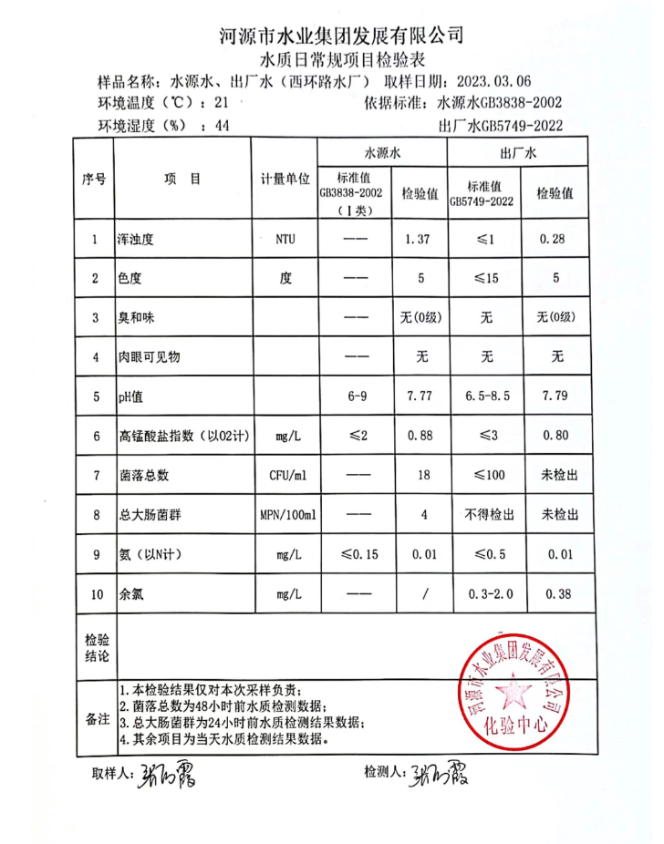 2023年3月6日水質(zhì)檢驗(yàn)報(bào)告