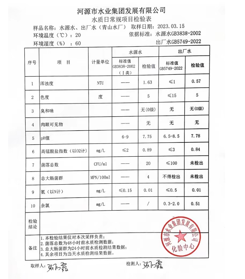2023年3月15日水質(zhì)檢驗(yàn)報(bào)告