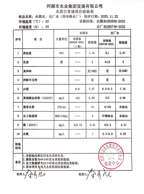 2023年11月22日水質(zhì)檢驗(yàn)報(bào)告 ???