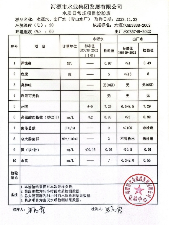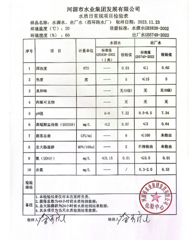 2023年11月23日水質(zhì)檢驗(yàn)報告 ???