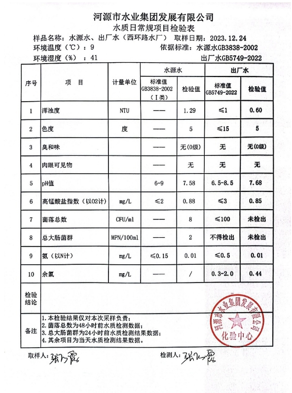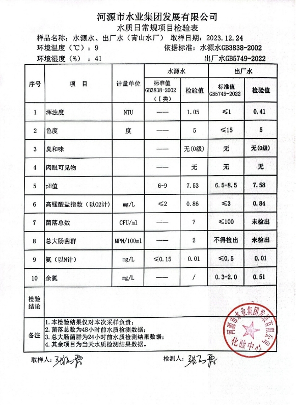 2023年12月24日水質(zhì)檢驗報告