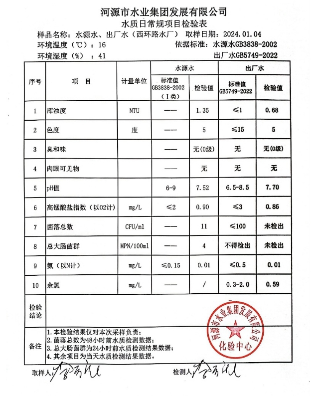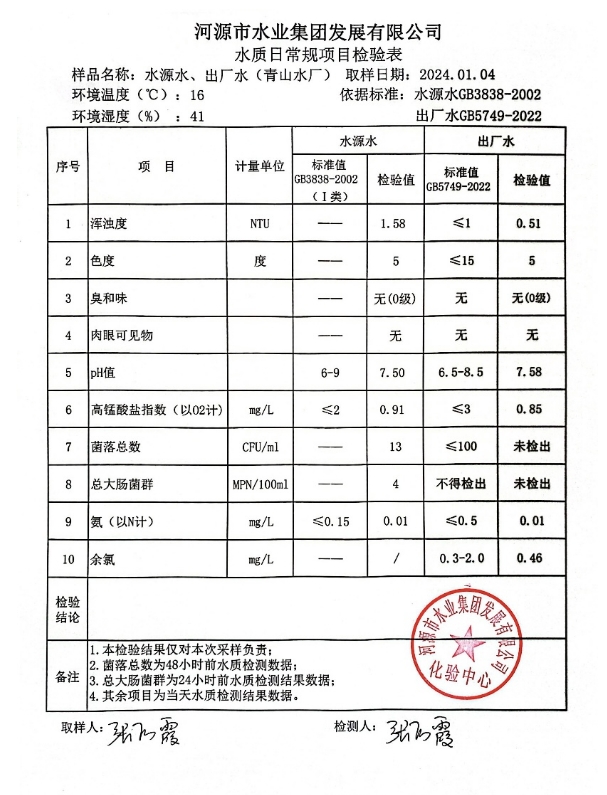 2024年1月4日水質(zhì)檢驗報告 ???