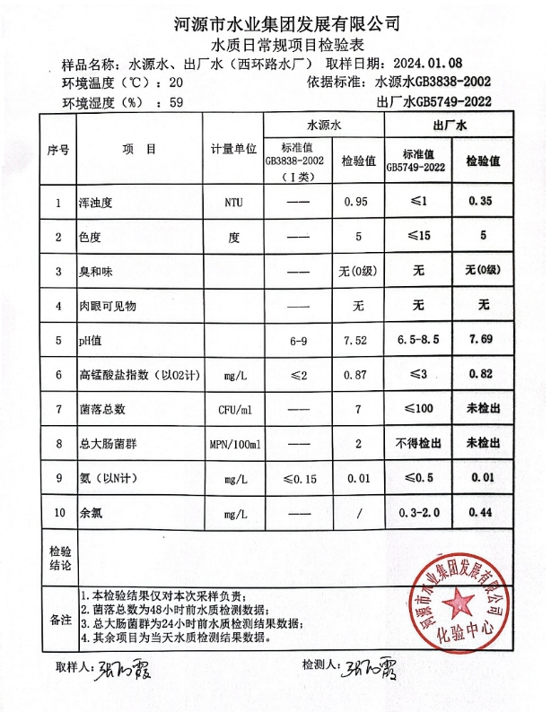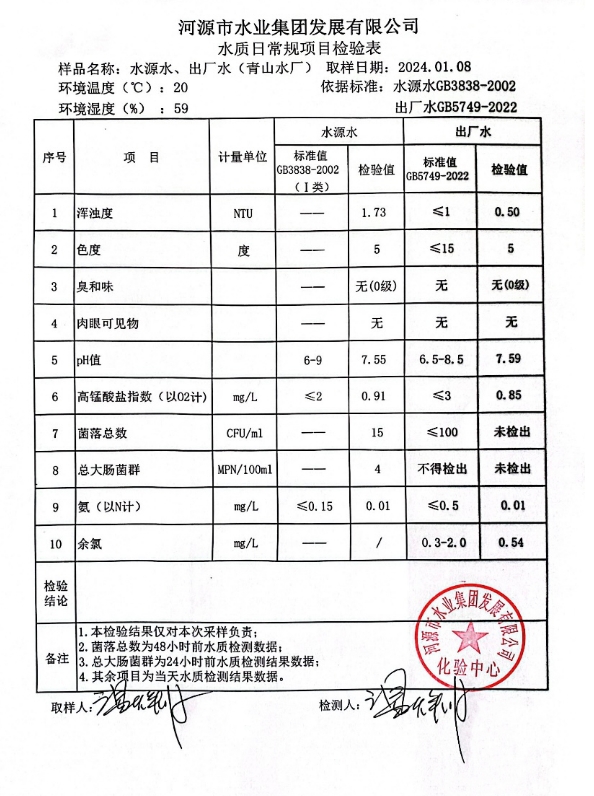 2024年1月8日水質(zhì)檢驗報告
