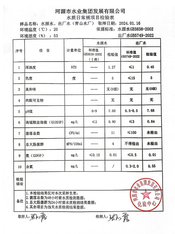 2024年1月16日水質(zhì)檢驗(yàn)報(bào)告 ???
