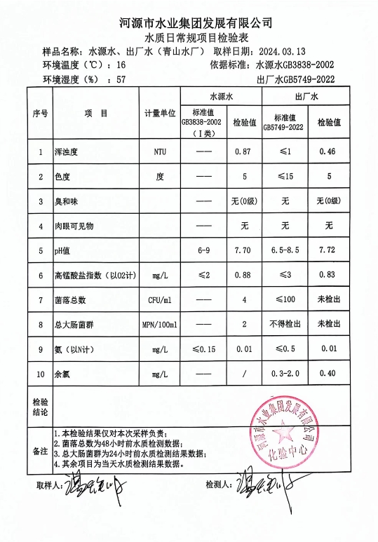 2024年3月13日水質(zhì)檢驗(yàn)報告 ???