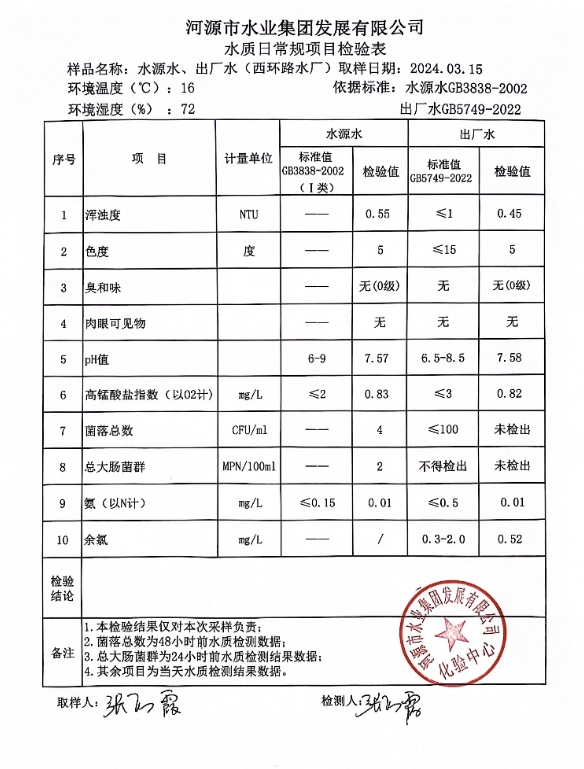 2024年3月15日水質(zhì)檢驗(yàn)報(bào)告 ???