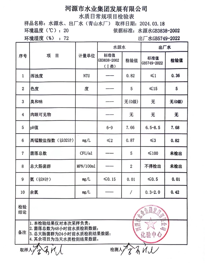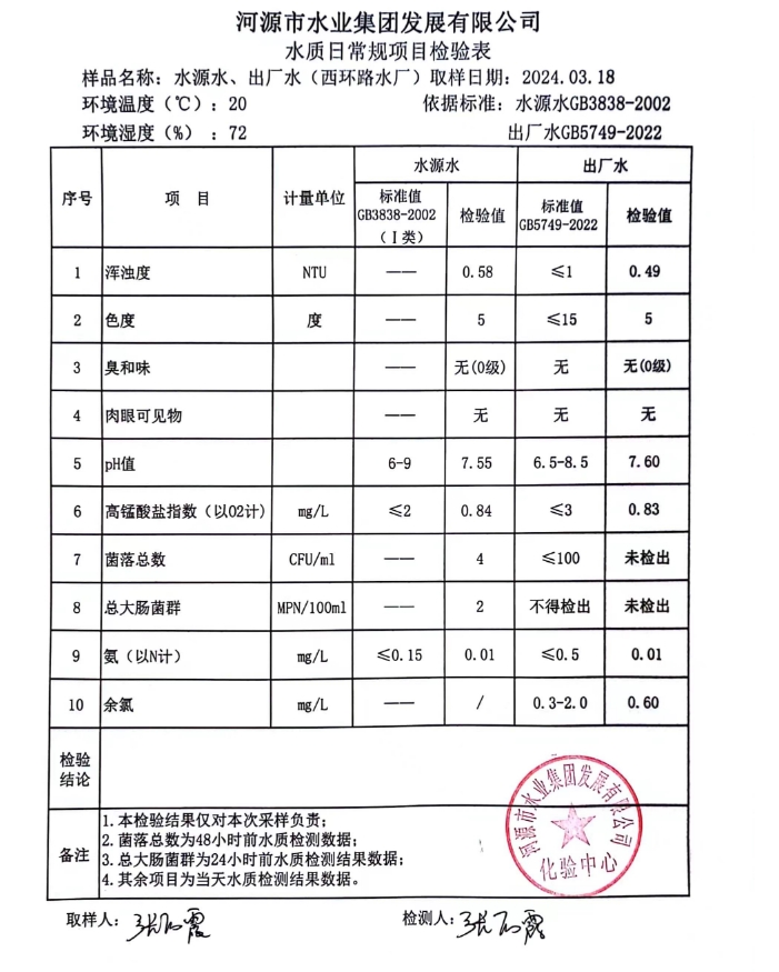 2024年3月18日水質(zhì)檢驗報告