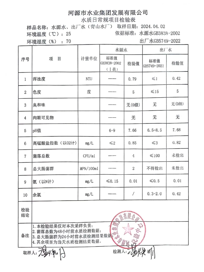 2024年4月2日水質(zhì)檢驗(yàn)報(bào)告