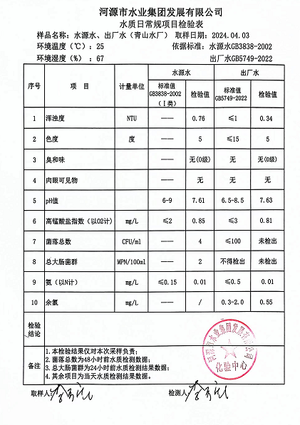 2024年4月3日水質(zhì)檢驗(yàn)報(bào)告