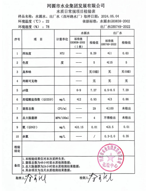 2024年5月4日水質(zhì)檢驗(yàn)報(bào)告 ???