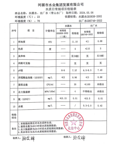 2024年5月6日水質(zhì)檢驗(yàn)報(bào)告 ???