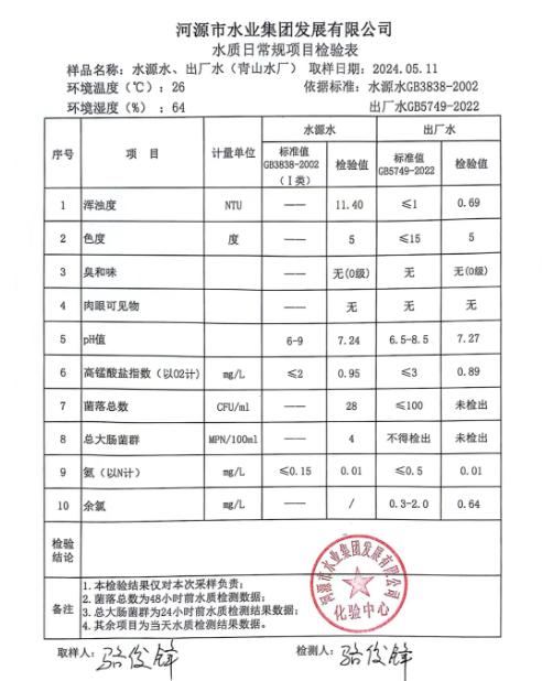 2024年5月11日水質(zhì)檢驗(yàn)報(bào)告 ???