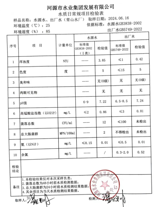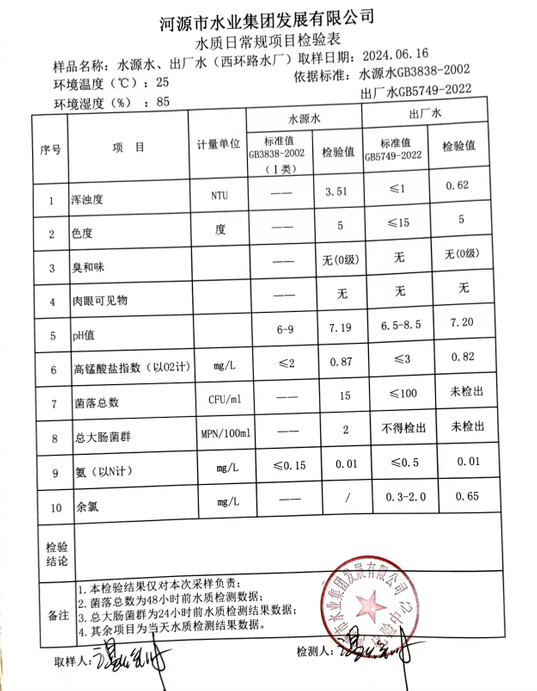 2024年6月16日水質(zhì)檢驗報告