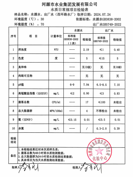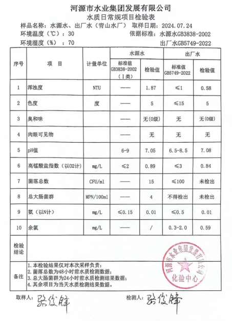 2024年7月24日水質(zhì)檢驗報告