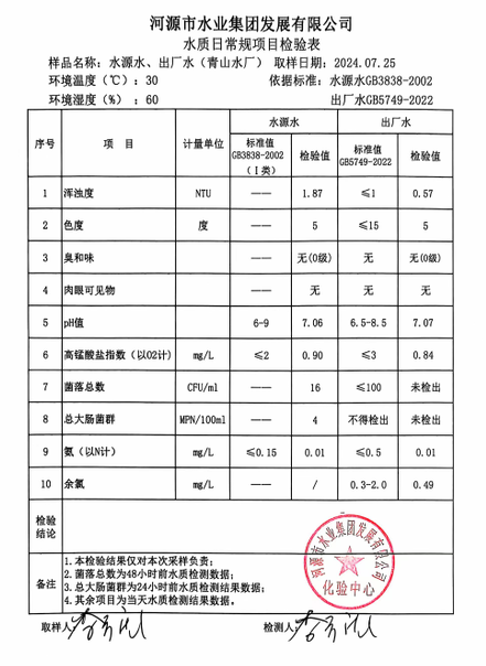 2024年7月25日水質檢驗報告
