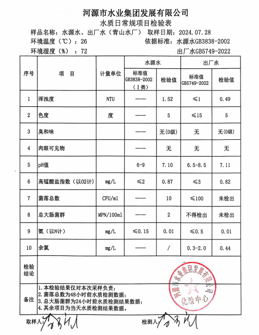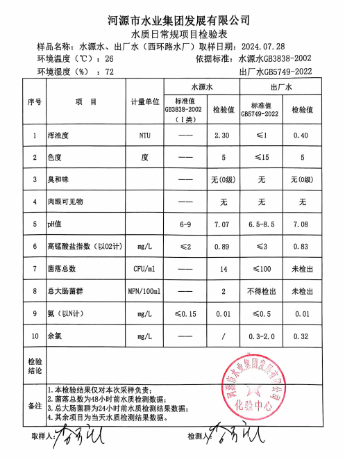 2024年7月28日水質(zhì)檢驗(yàn)報(bào)告