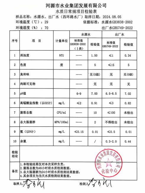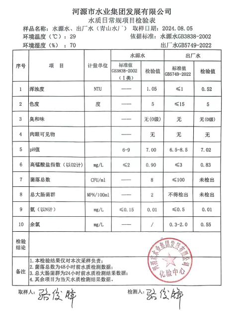 2024年8月5日水質(zhì)檢驗(yàn)報告