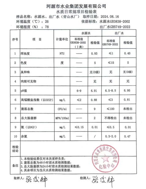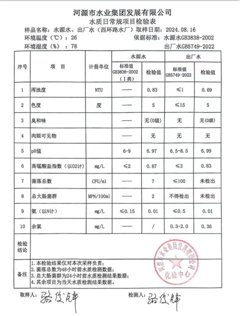 2024年8月16日水質檢驗報告