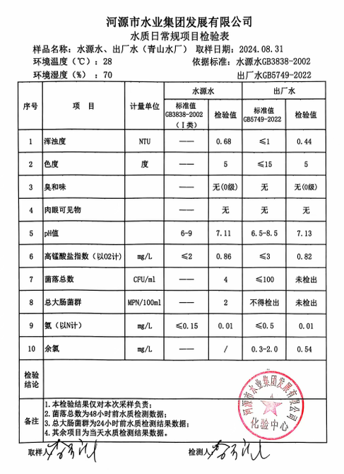 2024年8月31日水質檢驗報告
