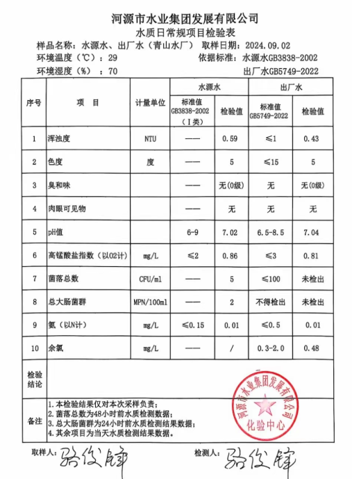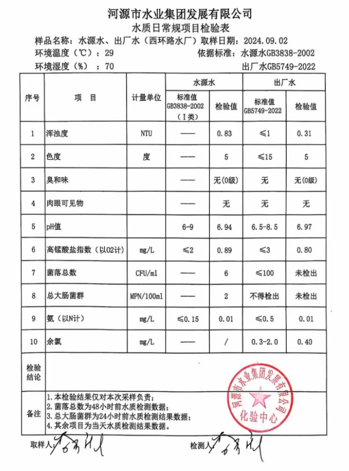 2024年9月2日水質(zhì)檢驗(yàn)報(bào)告